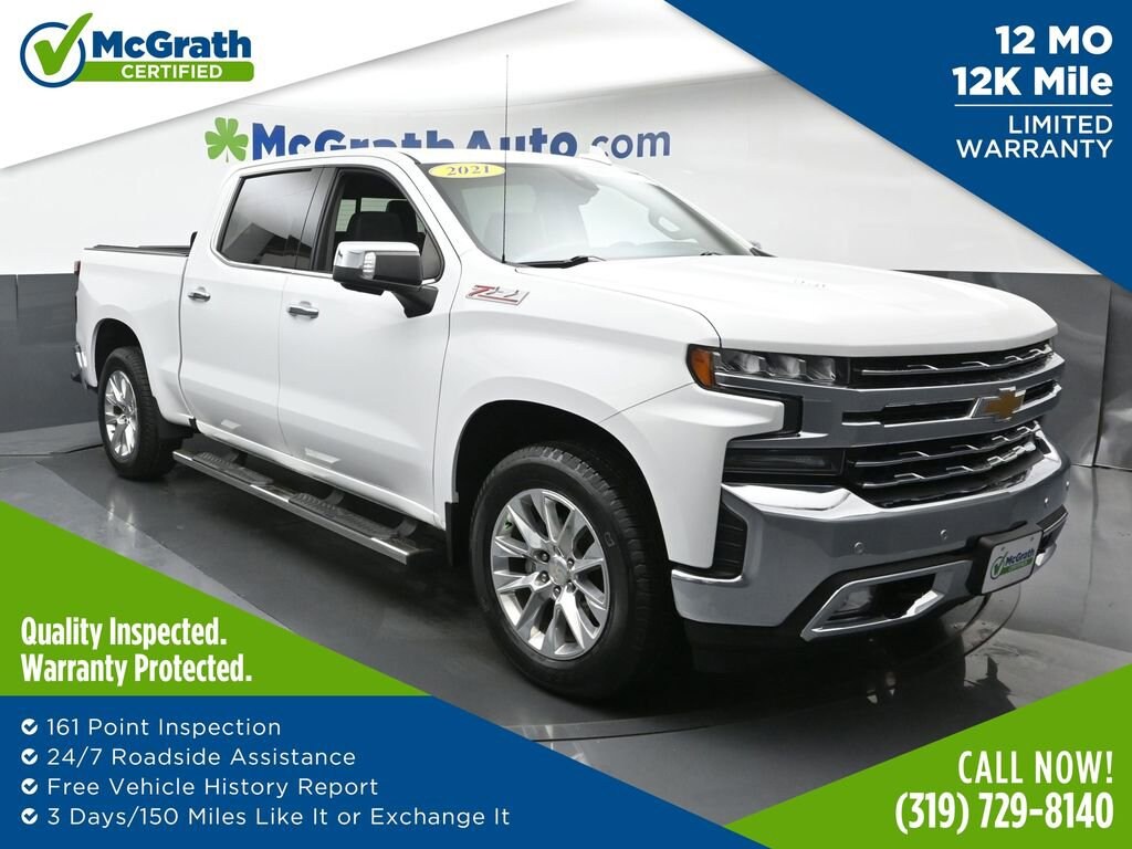 Elevate Your Driving Experience with the Exceptional 2021 Chevrolet Silverado 1500 LTZThis remarkable 2021 Chevrolet Silverado 1500 LTZ is a true standout in its class, offering a winning combination of power, capability, and premium features. With its striking white exterior and the renowned EcoTec3 6.2L V8 engine paired with a 10-speed automatic transmission, this Silverado is primed to tackle any task with confidence and efficiency.- Detailed- GOOD TIRES- Clean Carfax- LTZ PREMIUM PACKAGE- TECHNOLOGY PACKAGE- Z71 OFF-ROAD AND PROTECTION PACKAGEElevate your driving experience with the Silverado's impressive array of advanced technology and convenience features. Enjoy the convenience of the 15 diagonal Head-Up Display, the exceptional clarity of the HD Surround Vision with Trailer View Cameras, and the seamless connectivity of the Chevrolet Infotainment 3 Plus system with wireless charging.For those who demand the ultimate in off-road prowess, the Z71 Off-Road and Protection Package equips this Silverado with a rugged suspension, skid plates, and all-terrain tires, ensuring you can tackle any terrain with confidence.This Silverado 1500 LTZ is more than just a capable workhorse; it's a premium-appointed truck that delivers a refined and comfortable driving experience. The perforated leather-appointed seats, heated and ventilated front seats, and power-adjustable driver's seat with memory settings provide unparalleled comfort and convenience.Certified by Chevrolet, this Silverado 1500 LTZ has undergone a rigorous inspection process to ensure it meets the highest standards of quality and performance. With low mileage and a clean CARFAX report, this vehicle is ready to provide you with years of reliable service.Prices may change at any time and are subject to availability and prior sale. Taxes, title, license fees, and a $180 documentation fee are not included. Payments shown are estimates; actual terms vary by buyer and credit approval. Dealer is not responsible for errors in pricing or vehicle details, information is believed accurate but not guaranteed. Photos are for illustration only confirm details with the dealer. Some vehicles come with a $1295 Clear Guard package. Fuel economy ratings and driving range figures are based on EPA estimates for new vehicles, and actual mileage and range may vary. By submitting your phone number, you consent to occasional SMS or calls about our products and promotions; standard messaging rates apply. See dealer for details. Fuel economy figures are official EPA estimates and clearly labeled as such.