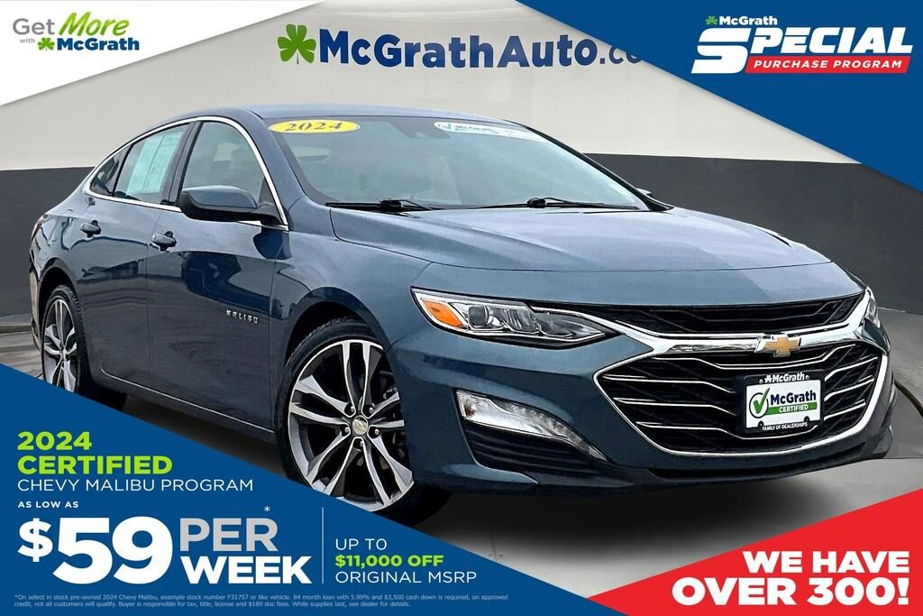 28/36 City/Highway MPG CARFAX One-Owner. Clean CARFAX.Certification Program Details: McGrath Certified Benefits: * Free Vehicle History Report * 106 Point Full Vehicle Condition Inspection * Like it or Exchange it! Three Day Policy 2024 Chevrolet Malibu LT 2LT 1.5L DOHC FWDWelcome to McGrath Chevy, your destination for award-winning automotive experiences. We were voted CBJ's 2024 #1 Coolest Place to Work and winner of 2024 Best of the Best Auto Dealer, Auto Service, and Fleet Dealer. We’re proud to deliver unmatched quality and service. With over 11,000 5-star Google reviews, our customers’ trust and satisfaction drive everything we do. Whether you’re buying, servicing, or building your fleet, experience why McGrath Chevy is the top choice for all your automotive needs! We’ve got everything from tough trucks to fuel-sipping commuters and adventure-ready SUVs. Our vehicles go through a rigorous inspection process, and we offer multiple layers of certification based on the vehicle's age, mileage and inspection results. Whether you’re shopping for a brand-new ride or a budget-friendly pre-owned gem, we’re here to make the process easy, fun, and stress-free.Prices may change at any time and are subject to availability and prior sale. Taxes, title, license fees, and a $180 documentation fee are not included. Payments shown are estimates; actual terms vary by buyer and credit approval. Dealer is not responsible for errors in pricing or vehicle details, information is believed accurate but not guaranteed. Photos are for illustration only confirm details with the dealer. Fuel economy ratings and driving range figures are based on EPA estimates for new vehicles, and actual mileage and range may vary. By submitting your phone number, you consent to occasional SMS or calls about our products and promotions; standard messaging rates apply. See dealer for details. Fuel economy figures are official EPA estimates and clearly labeled as such.