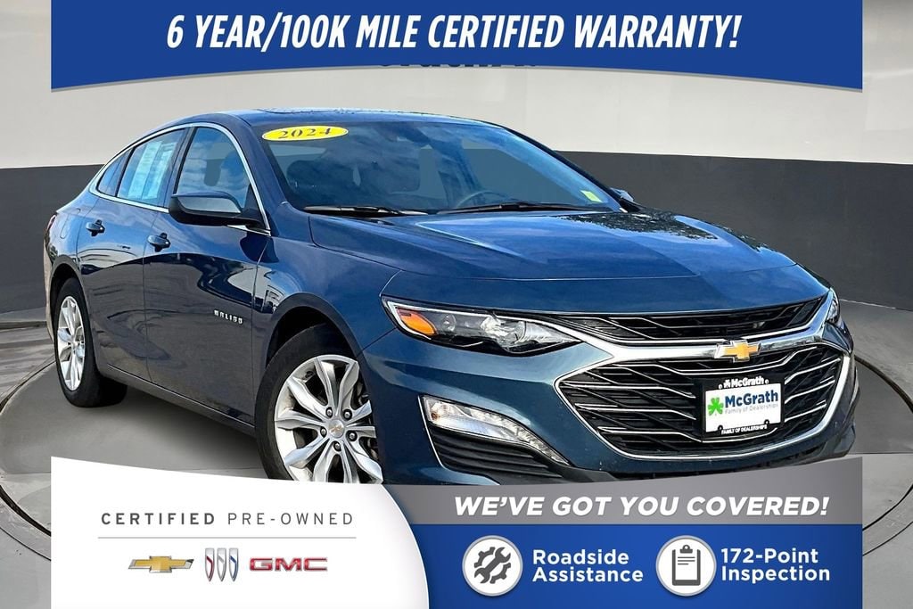 Discover the perfect blend of style, performance, and advanced technology in the 2024 Chevrolet Malibu LT 1LT. This exceptional sedan is ready to elevate your driving experience and exceed your expectations. Sunroof, Power, Tilt-Sliding with additional skylight fixed glass aft of the sliding glass and sunshadeIndulge in the convenience of the Malibu's impressive array of features, designed to enhance your daily commute and weekend adventures. Enjoy the seamless integration of your digital world with the Chevrolet Infotainment 3 Plus system, complete with SiriusXM and wireless Apple CarPlay/Android Auto connectivity.Stay comfortable and in control with the Malibu's dual-zone automatic climate control, heated front seats, and 8-way power driver's seat. The premium audio system and 6 speakers provide a captivating listening experience, while the rear-view camera and OnStar emergency communication system offer added peace of mind.Beneath the sleek exterior, the Malibu's 1.5L DOHC engine and CVT transmission deliver a smooth and efficient driving experience, with an impressive EPA-estimated 28 city/36 highway mpg. The four-wheel independent suspension and power steering ensure responsive handling, while the 4-wheel disc brakes with ABS provide confident stopping power.This Malibu LT 1LT is a Certified Pre-Owned vehicle, meaning it has undergone a rigorous inspection and comes with the assurance of a comprehensive warranty. Experience the confidence and value of owning a Certified Pre-Owned Chevrolet Malibu.We invite you to visit our showroom and take this exceptional vehicle for a test drive. Discover the perfect balance of style, technology, and performance that the 2024 Chevrolet Malibu LT 1LT has to offer.Prices may change at any time and are subject to availability and prior sale. Taxes, title, license fees, and a $180 documentation fee are not included. Payments shown are estimates; actual terms vary by buyer and credit approval. Dealer is not responsible for errors in pricing or vehicle details, information is believed accurate but not guaranteed. Photos are for illustration only confirm details with the dealer. Some vehicles come with a $1295 Clear Guard package. Fuel economy ratings and driving range figures are based on EPA estimates for new vehicles, and actual mileage and range may vary. By submitting your phone number, you consent to occasional SMS or calls about our products and promotions; standard messaging rates apply. See dealer for details. Fuel economy figures are official EPA estimates and clearly labeled as such.