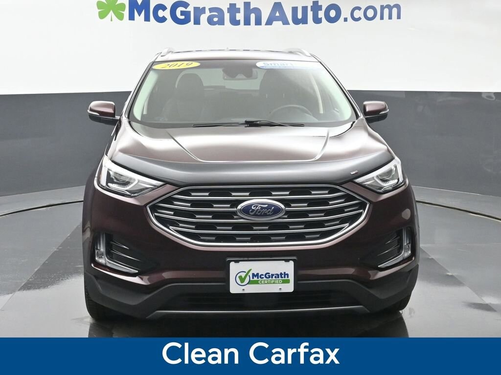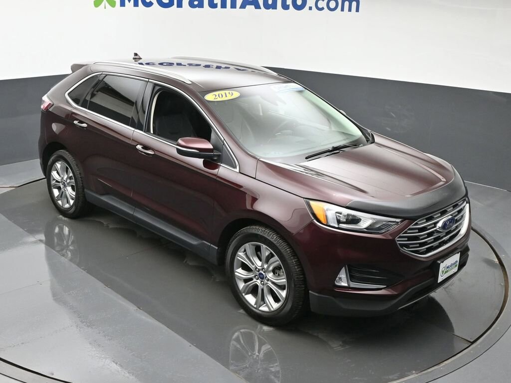 Discover the perfect blend of style, performance, and technology in this stunning 2019 Ford Edge Titanium. Boasting a sleek Red exterior and a well-appointed interior, this SUV is ready to elevate your driving experience.- Clean Carfax- FORD CO-PILOT360 ASSIST+- Evasive Steering Assist- Voice-Activated Touchscreen Navigation System- Adaptive Cruise Control with Stop & Go- Lane Centering- Cold Weather PackageUnder the hood, the powerful EcoBoost 2.0L I4 GTDi DOHC Turbocharged VCT engine, paired with an 8-Speed Automatic transmission and All-Wheel Drive, delivers an impressive balance of efficiency and capability. With an EPA-estimated 21 MPG in the city and 28 MPG on the highway, this Edge Titanium offers the perfect blend of performance and practicality.Step inside and discover the premium features that set this vehicle apart. The Burgundy Velvet Metallic Tinted Clearcoat exterior is complemented by the luxurious Leather-Trimmed Heated Sport Bucket Seats, providing both comfort and style. The SYNC 3 Communications & Entertainment System, with its Voice-Activated Touchscreen Navigation, seamlessly integrates your digital life, while the 12-Speaker B&O Sound System by Bang & Olufsen delivers an immersive audio experience.For added convenience and peace of mind, this Edge Titanium is equipped with a host of advanced safety features, including the FORD CO-PILOT360 ASSIST+ suite. Evasive Steering Assist, Adaptive Cruise Control with Stop & Go, and Lane Centering work together to help you navigate the road with confidence.This 2019 Ford Edge Titanium has been meticulously inspected and certified, ensuring you can drive with the utmost confidence. With its exceptional features, impressive performance, and uncompromising quality, this SUV is the perfect choice for the discerning buyer.Prices may change at any time and are subject to availability and prior sale. Taxes, title, license fees, and a $180 documentation fee are not included. Pricing reflects all applicable rebates and incentives assigned to the dealer. Example payments are estimates; actual terms vary based on credit approval. APR and payment estimates apply to qualified buyers, not all buyers qualify for advertised rates. Factory cash incentives may not be combined with promotional APR. Fuel economy ratings and driving range figures are based on EPA estimates for new vehicles, and actual mileage and range may vary. Some in-stock vehicles may include a $1,295 Clear Guard Protection package By submitting your phone number online, you consent to occasional SMS or voice calls about our products and promotions; standard messaging rates may apply. Consult dealer for offer eligibility and other details. Factory MSRP is not the final advertised/asking price of the vehicle. Fuel economy figures are EPA estimates.