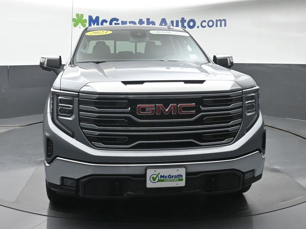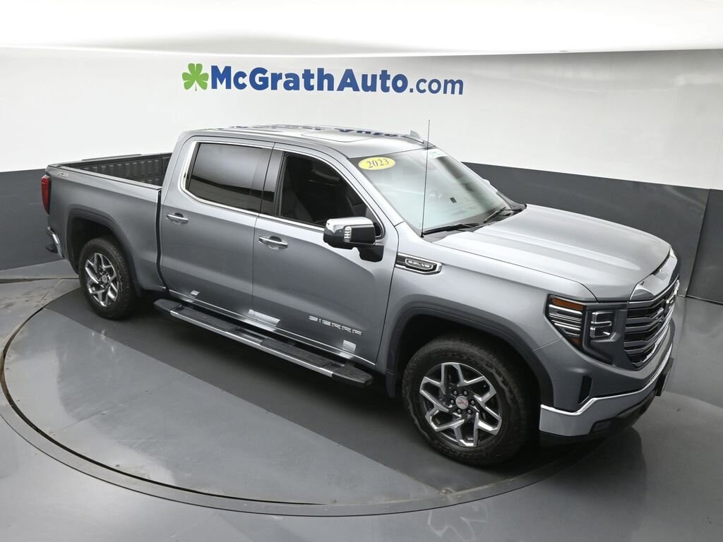 Experience the Unparalleled Capability and Comfort of the 2023 GMC Sierra 1500 SLTIntroducing the 2023 GMC Sierra 1500 SLT, a true powerhouse that combines exceptional performance, advanced technology, and uncompromising luxury. This stunning truck is ready to conquer any terrain and elevate your driving experience to new heights. Clean Carfax SLT Convenience Package SLT Preferred Package X31 Off-Road Package Power SunroofUnder the hood, the Sierra 1500 SLT boasts the renowned EcoTec3 5.3L V8 engine, mated to a smooth-shifting 10-speed automatic transmission and equipped with 4-wheel drive. This potent powertrain delivers a thrilling 16 city/20 highway mpg, ensuring you can tackle your daily tasks and weekend adventures with confidence.The SLT's rugged yet refined exterior is complemented by a host of premium features, including 20-inch polished aluminum wheels, chrome accents, and a power sliding rear window. Step inside the spacious cabin and you'll be greeted by luxurious leather-appointed seating, heated and ventilated front seats, and the Bose Premium Audio System, creating an unparalleled driving experience.Elevate your commute and your lifestyle with the 2023 GMC Sierra 1500 SLT. This truck is equipped with a suite of advanced technology features, including the GMC Infotainment System with wireless Apple CarPlay and Android Auto, a high-definition rear vision camera, and a 120-volt power outlet in the bed, making it the ultimate partner for work and play.The Sierra 1500 SLT also offers exceptional off-road capability, thanks to the X31 Off-Road Package. This package includes off-road-tuned suspension, skid plates, and all-terrain tires, ensuring you can conquer any terrain with confidence.Whether you're hauling heavy loads, towing your trailer, or simply enjoying the open road, the 2023 GMC Sierra 1500 SLT is the perfect companion. Experience the unrivaled power, comfort, and capability that this exceptional truck has to offer. Visit our showroom today and let us help you find the perfect Sierra 1500 SLT to elevate your driving experience.Prices may change at any time and are subject to availability and prior sale. Taxes, title, license fees, and a $180 documentation fee are not included. Pricing reflects all applicable rebates and incentives assigned to the dealer. Example payments are estimates; actual terms vary based on credit approval. APR and payment estimates apply to qualified buyers, not all buyers qualify for advertised rates. Factory cash incentives may not be combined with promotional APR. Fuel economy ratings and driving range figures are based on EPA estimates for new vehicles, and actual mileage and range may vary. Some in-stock vehicles may include a $1,295 Clear Guard Protection package By submitting your phone number online, you consent to occasional SMS or voice calls about our products and promotions; standard messaging rates may apply. Consult dealer for offer eligibility and other details. Factory MSRP is not the final advertised/asking price of the vehicle. Fuel economy figures are EPA estimates.