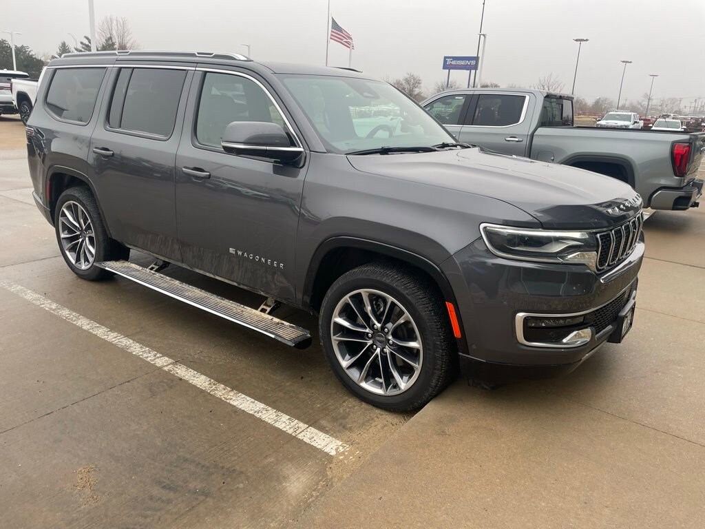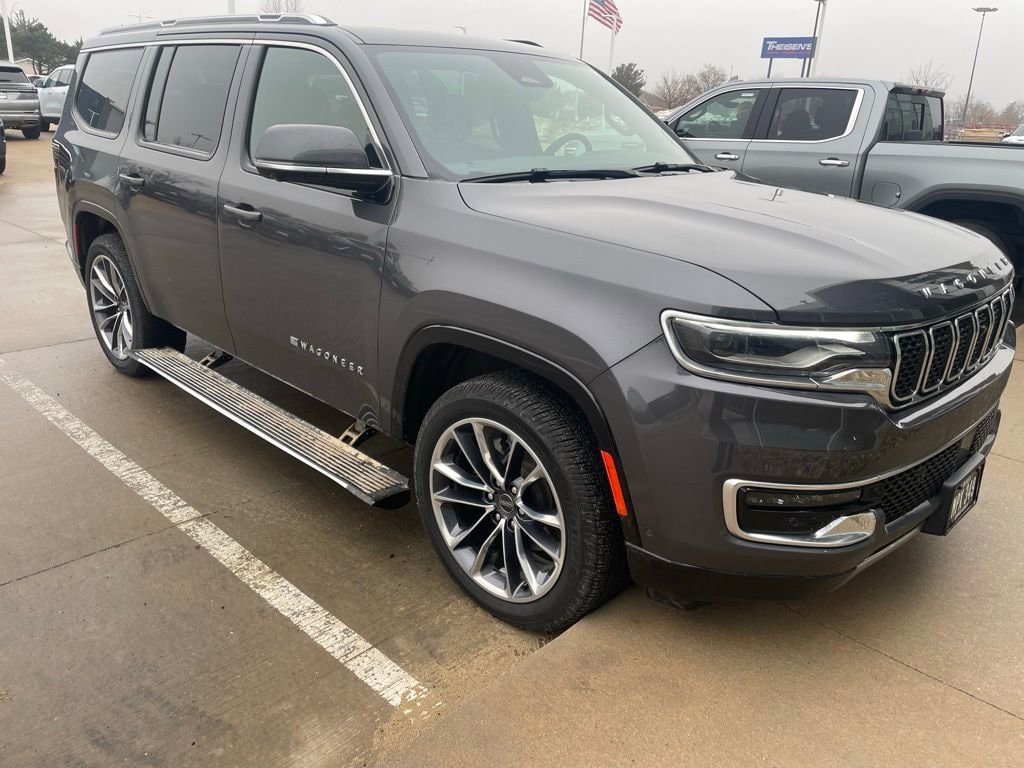 Elevate your driving experience with this stunning 2022 Jeep Wagoneer Series III. This premium SUV is the perfect blend of power, luxury, and versatility, ready to take on any adventure. Premium Group I: Indulge in the exceptional 19-speaker McIntosh audio system, enjoy the convenience of power-deployable running boards, and relish the open-air freedom of the 3-panel sunroof. Convenience Group I: Stay connected and secure with the surround-view camera system, drowsy driver detection, and intersection collision assist system. Striking Gray Metallic Clearcoat exterior accentuates the Wagoneer's bold and refined presence.Under the hood, the powerful 5.7L V8 engine, paired with an 8-speed automatic transmission and 4-wheel drive, delivers impressive performance and capability. With a city fuel economy of 15 MPG and 20 MPG on the highway, this Wagoneer strikes the perfect balance between power and efficiency.Slip into the luxurious leather-trimmed bucket seats and experience the unparalleled comfort of the heated and ventilated front seats. The 2nd-row manual window shades and the 3-panel sunroof create a serene and airy cabin, perfect for long journeys or daily commutes.Stay connected with the Uconnect 5 navigation system, featuring a stunning 10.1-inch display. The heads-up display and traffic sign recognition keep you informed and focused on the road ahead.Versatility is the Wagoneer's middle name. The power liftgate, adjustable roof rail crossbars, and reversible cargo mat make it easy to load and secure your gear, whether you're heading to the mountains or the city.This 2022 Jeep Wagoneer Series III is a true testament to Jeep's commitment to excellence. Experience the pinnacle of luxury, capability, and technology by scheduling a test drive today. We're confident this Wagoneer will exceed your expectations and become the ultimate companion for your adventures.Prices may change at any time and are subject to availability and prior sale. Taxes, title, license fees, and a $180 documentation fee are not included. Pricing reflects all applicable rebates and incentives assigned to the dealer. Example payments are estimates; actual terms vary based on credit approval. APR and payment estimates apply to qualified buyers, not all buyers qualify for advertised rates. Factory cash incentives may not be combined with promotional APR. Fuel economy ratings and driving range figures are based on EPA estimates for new vehicles, and actual mileage and range may vary. Some in-stock vehicles may include a $1,295 Clear Guard Protection package By submitting your phone number online, you consent to occasional SMS or voice calls about our products and promotions; standard messaging rates may apply. Consult dealer for offer eligibility and other details. Factory MSRP is not the final advertised/asking price of the vehicle. Fuel economy figures are EPA estimates.