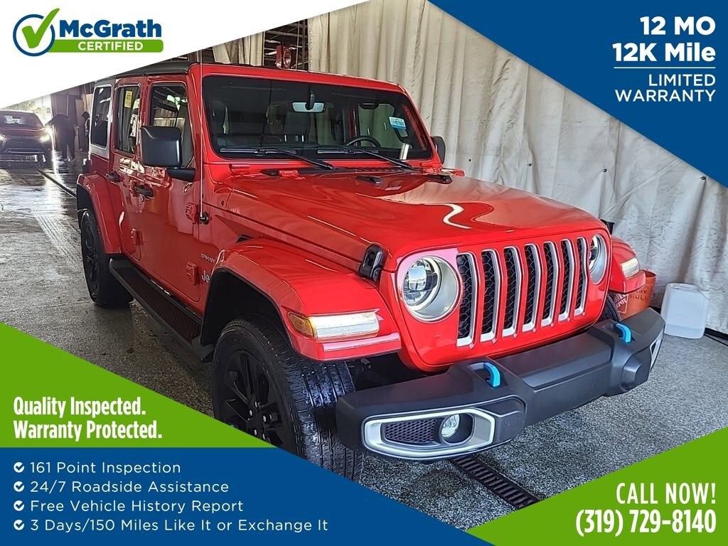 CARFAX One-Owner.2023 Jeep Wrangler Sahara 4xe 2.0L I4 DOHC 4WDWelcome to McGrath Chevy, your destination for award-winning automotive experiences. We were voted CBJ's 2024 #1 Coolest Place to Work and winner of 2024 Best of the Best Auto Dealer, Auto Service, and Fleet Dealer. We’re proud to deliver unmatched quality and service. With over 11,000 5-star Google reviews, our customers’ trust and satisfaction drive everything we do. Whether you’re buying, servicing, or building your fleet, experience why McGrath Chevy is the top choice for all your automotive needs! We’ve got everything from tough trucks to fuel-sipping commuters and adventure-ready SUVs. Our vehicles go through a rigorous inspection process, and we offer multiple layers of certification based on the vehicle's age, mileage and inspection results. Whether you’re shopping for a brand-new ride or a budget-friendly pre-owned gem, we’re here to make the process easy, fun, and stress-free.Prices may change at any time and are subject to availability and prior sale. Taxes, title, license fees, and a $180 documentation fee are not included. Payments shown are estimates; actual terms vary by buyer and credit approval. Dealer is not responsible for errors in pricing or vehicle details, information is believed accurate but not guaranteed. Photos are for illustration only confirm details with the dealer. Fuel economy ratings and driving range figures are based on EPA estimates for new vehicles, and actual mileage and range may vary. By submitting your phone number, you consent to occasional SMS or calls about our products and promotions; standard messaging rates apply. See dealer for details. Fuel economy figures are official EPA estimates and clearly labeled as such.